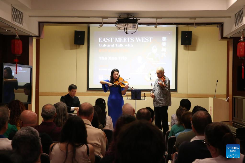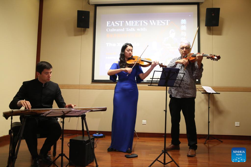 Artists perform during a concert themed "East meets West" in Valletta, Malta, on June 21, 2023. The concert themed "East meets West" in celebration of the Dragon Boat Festival, a Chinese traditional festival, was held here on Wednesday night. (Xinhua/Chen Wenxian)