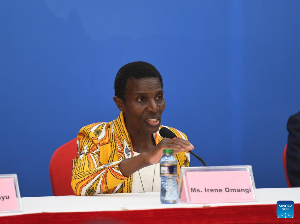 Irene Omangi, the deputy chief principal of Kenya High School, speaks during an interactive session held by the Chinese Embassy in Kenya in Nairobi, Kenya, on June 21, 2023. The Chinese Embassy in Kenya on Wednesday held the interactive session with Kenyan students to deepen cooperation in the fields of education and culture. (Xinhua/Li Yahui)