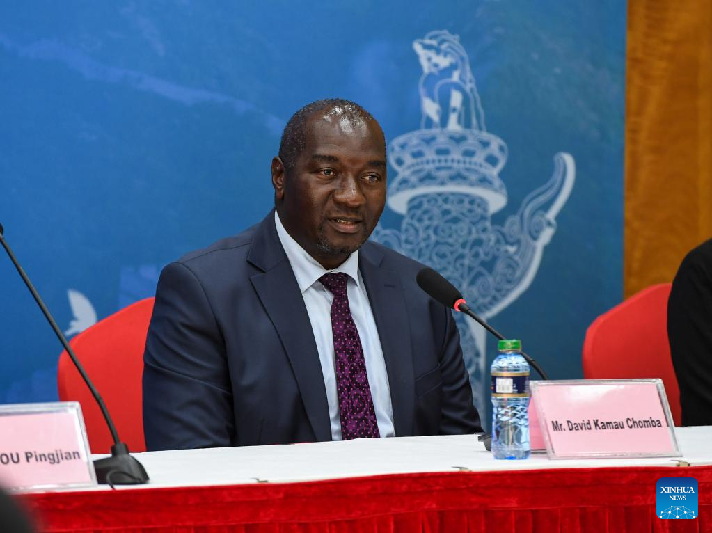 David Kamau Chomba, the chief principal of Alliance High School, speaks during an interactive session held by the Chinese Embassy in Kenya in Nairobi, Kenya, on June 21, 2023. The Chinese Embassy in Kenya on Wednesday held the interactive session with Kenyan students to deepen cooperation in the fields of education and culture. (Xinhua/Li Yahui)