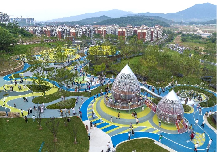 People visit a park transformed from an abandoned mine in Wuhu, east China's Anhui province. (Photo by Xiao Benxiang/People's Daily Online)