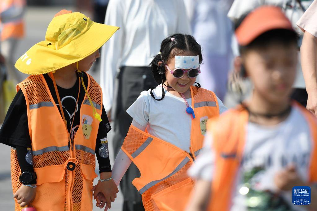 Children visit the Temple of Heaven in Beijing, capital of China, June 23, 2023. Beijing issued a red alert for high temperature at 7 a.m. Friday. (Xinhua/Ju Huanzong)