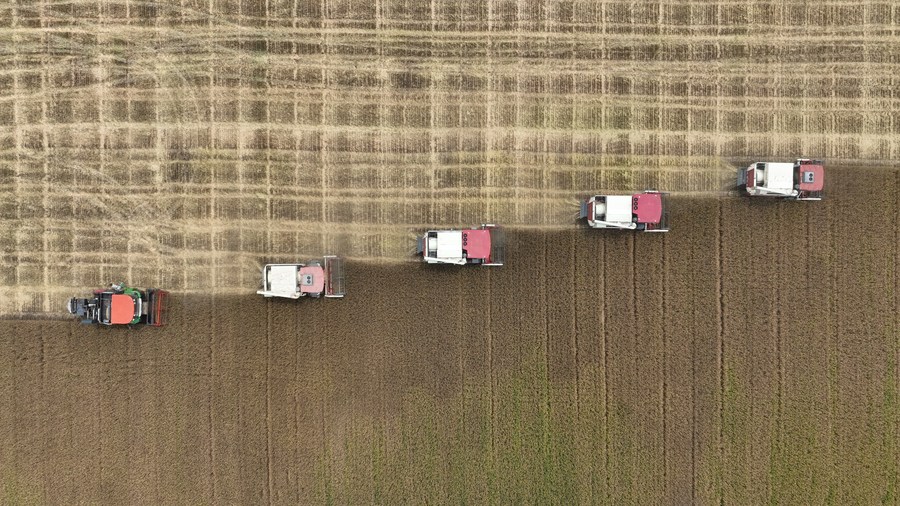 China has consistently kept its farmland area above the red line of 1.8 billion mu, as a means of ensuring food security. Meanwhile, the contribution rate of agricultural science and technology has increased from 53.5 percent in 2012 to 60.7 percent in 2020, and is expected to rise to 64 percent in 2025.