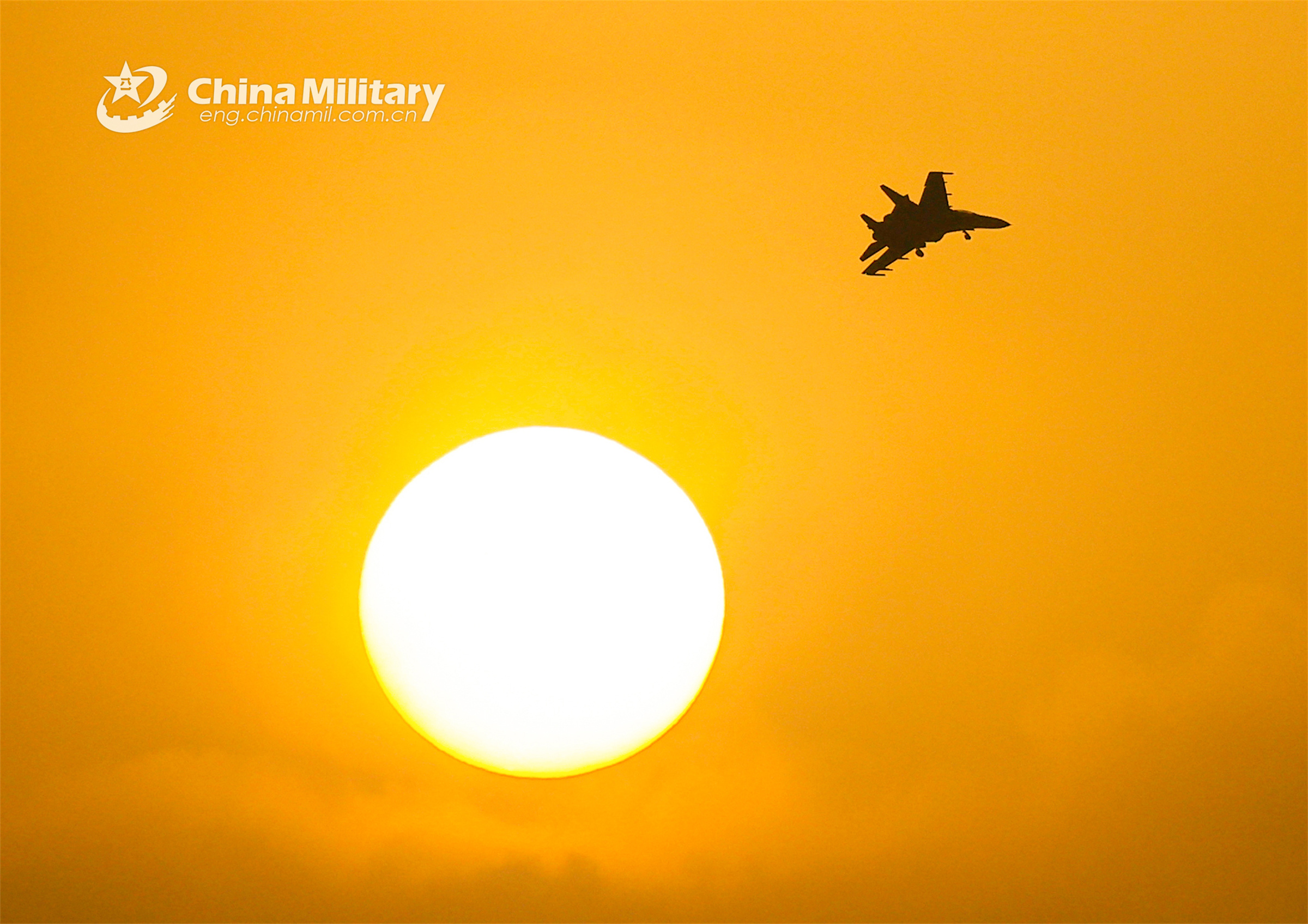 A fighter jet attached to a brigade of the PLA Air Force Xi'an Flying College heads back to the departure aerodrome after completing appointed tasks during a recent round-the-clock flight training exercise. (eng.chinamil.com.cn/Photo by Cui Baoliang)