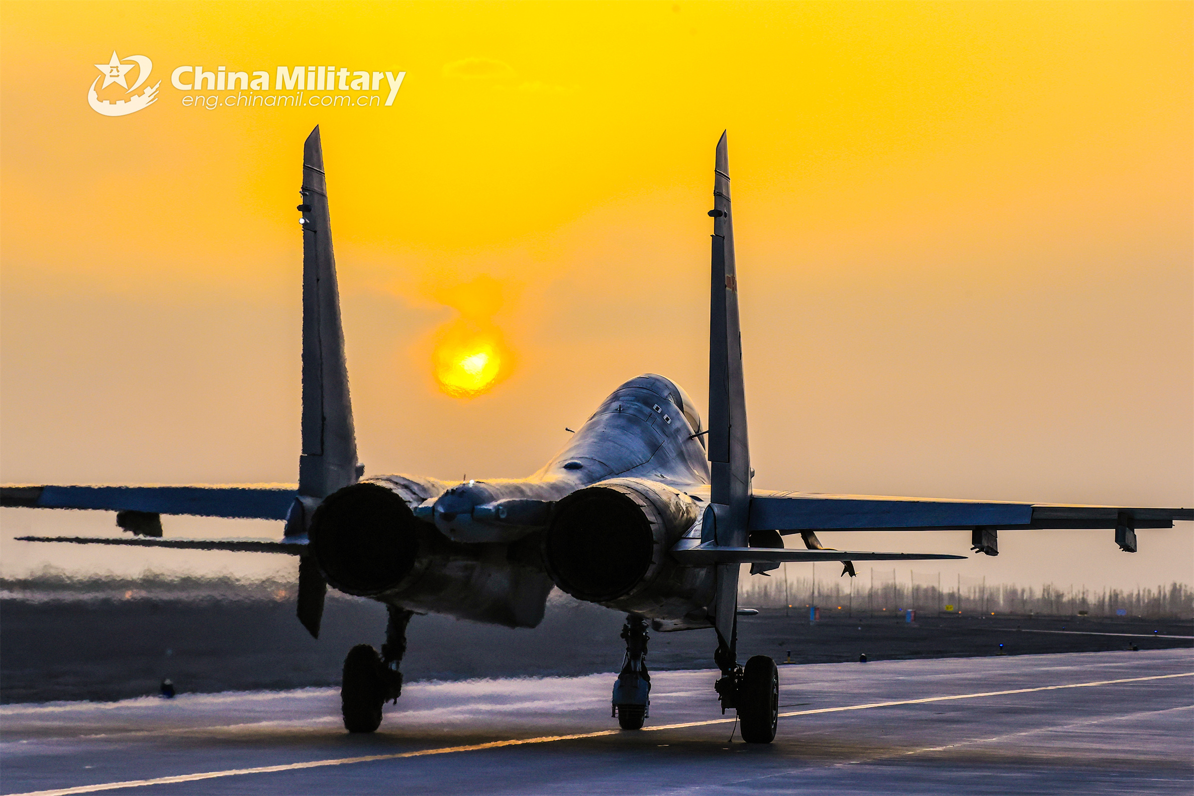 A fighter jet attached to a brigade of the PLA Air Force Xi'an Flying College taxies on the flightline to get ready for a recent round-the-clock flight training exercise. (eng.chinamil.com.cn/Photo by Cui Baoliang)