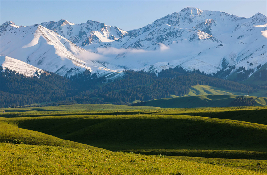 The picturesque scenery of the Narat Grasslands in Xinyuan county, northwest China's Xinjiang Uygur Autonomous Region. (Photo/Zhang Wenting)