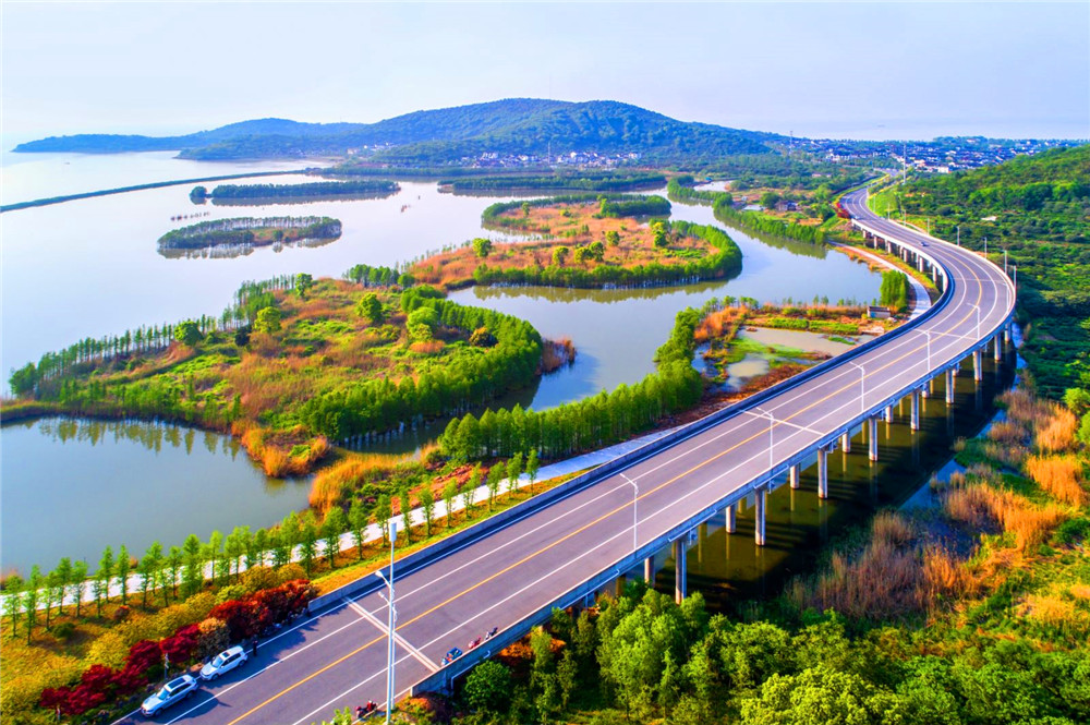 A road running along the Taihu Lake which connects four cities in east China's Jiangsu and Zhejiang provinces. (Photo courtesy of the Ministry of Transport of China)
