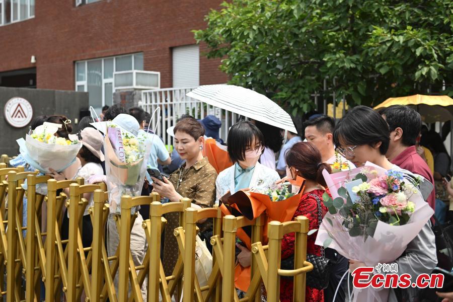 Parents wait outside an exam site at a high school in Beijing, June 26, 2023. (Photo: China News Service/Tian Yuhao)