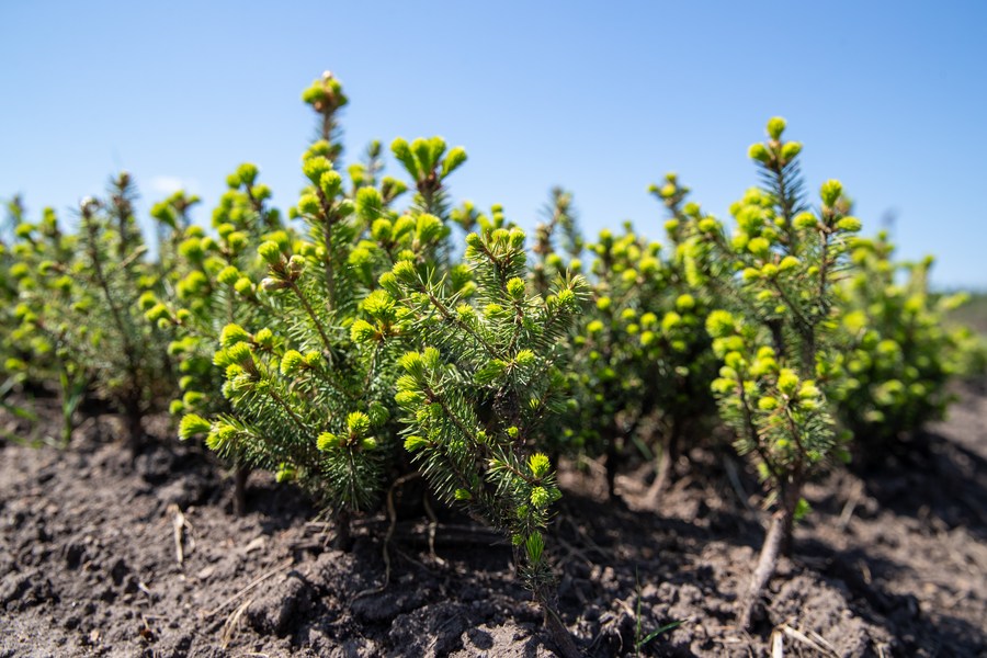 This photo taken on May 24, 2023 shows red pine saplings planted at a forestry of Heilongjiang Yichun forest industry Refco Group Ltd in Yichun, northeast China's Heilongjiang Province. (Xinhua/Zhang Tao)