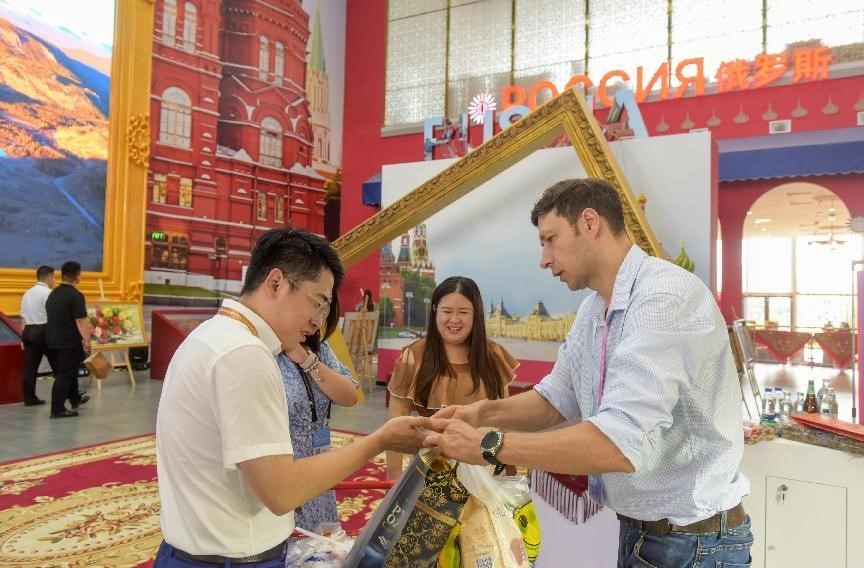 At this year's investment and trade expo, a rich array of characteristic food, consumer goods, handicrafts, and agricultural products from different countries were put on display, offering visitors a chance to shop while enjoying a glimpse into foreign customs and traditions.