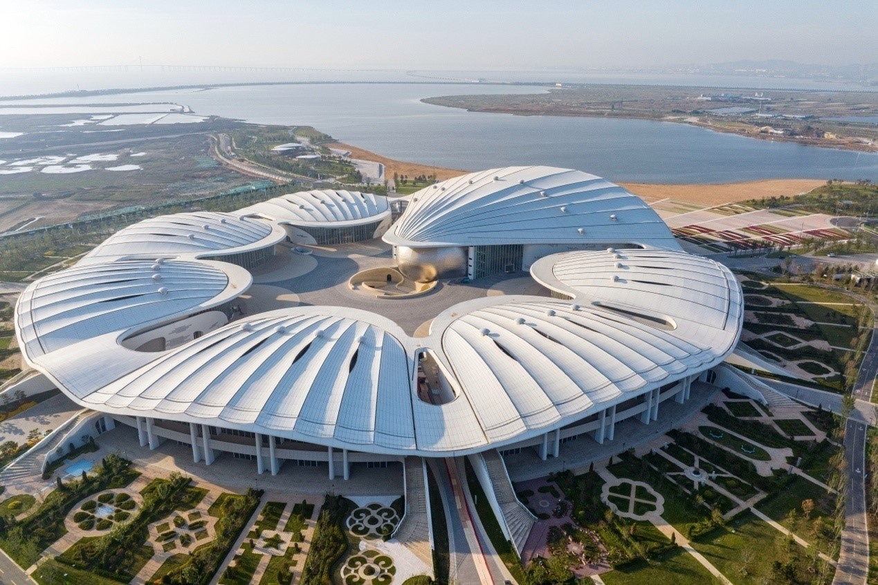 Photo taken on June 5, 2023 shows the Qingdao SCODA Pearl International Expo Center, which hosted the 2023 SCO International Investment and Trade Expo, in Qingdao, east China's Shandong province. (People's Daily Online/Han Jiajun)