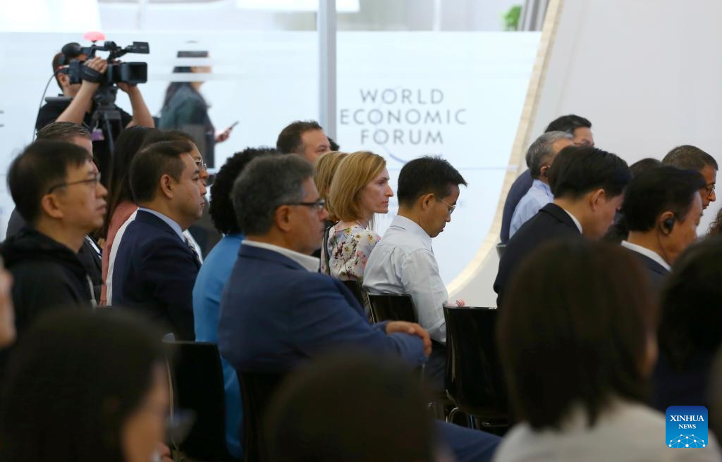 Participants attend a session themed "Horizon Scan: China Future Trends" of the 14th Annual Meeting of the New Champions, also known as the Summer Davos, in Tianjin, north China, June 27, 2023. (Xinhua/Sun Weitong)