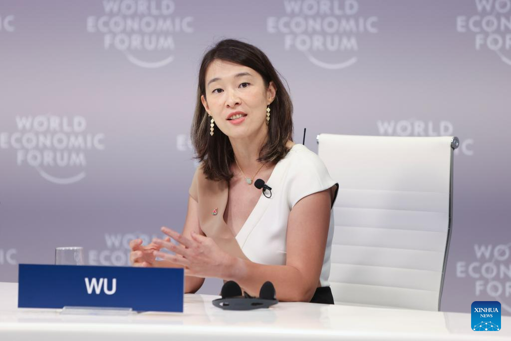 Angela Wu, associate professor at the Hong Kong University of Science and Technology, speaks during a session themed "Top 10 Emerging Technologies of 2023" for the 14th Annual Meeting of the New Champions, also known as the Summer Davos, in Tianjin, north China, June 27, 2023. (Xinhua/Meng Chenguang)