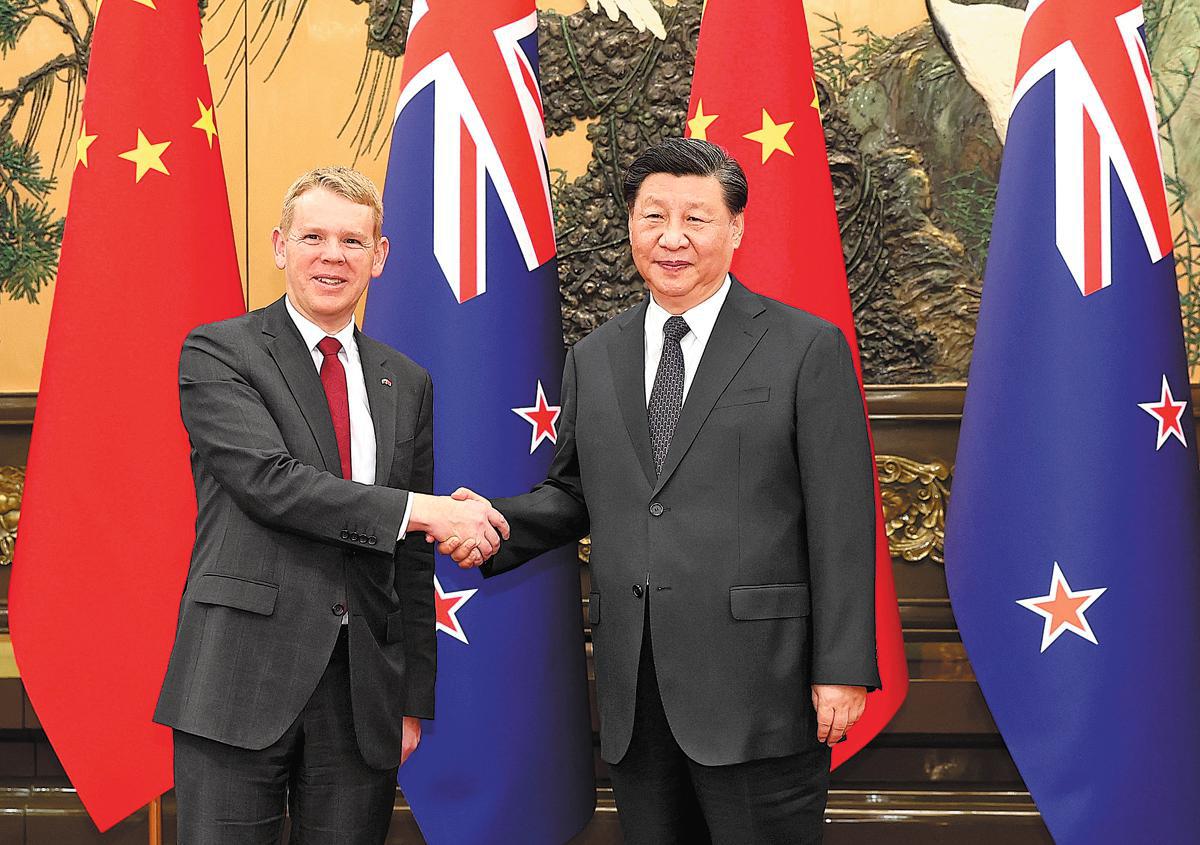 Hipkins said his country attaches great importance to ties with China, and he called upon both sides to continue deepening cooperation in economy, trade, education, science and technology, and people-to-people exchanges.