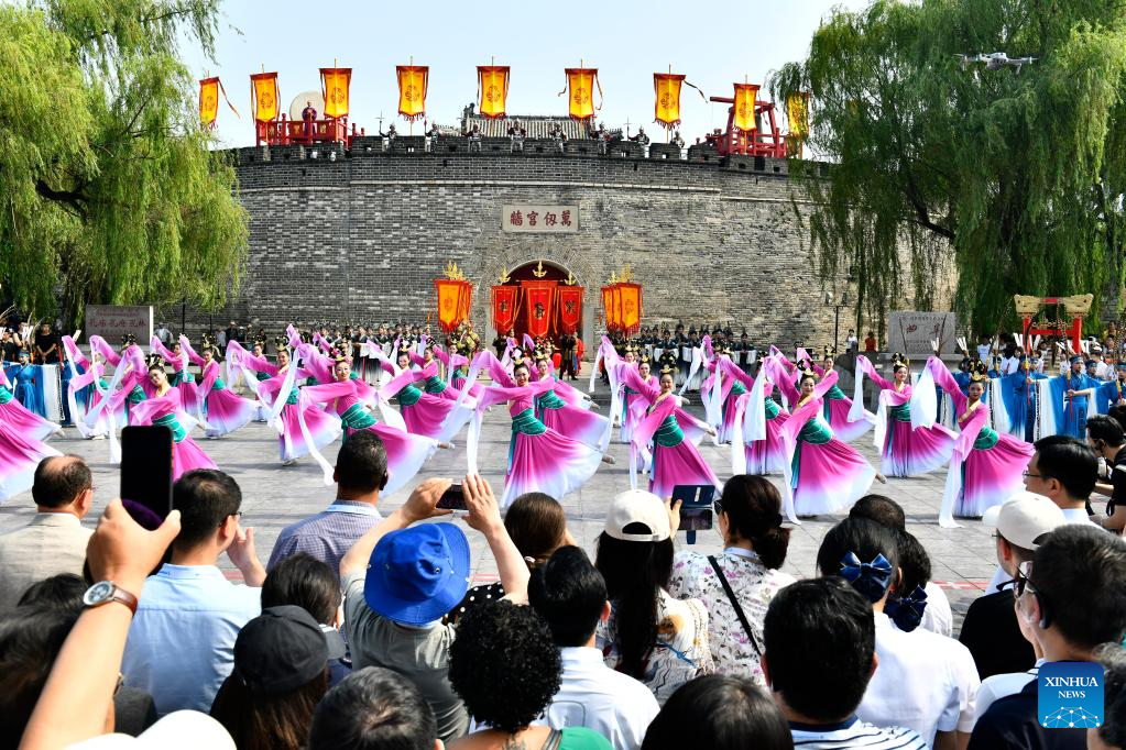 Dancers perform at the Confucius Temple in Qufu, east China's Shandong Province, June 27, 2023. A series of activities to promote traditional Chinese culture were held at the Confucius Temple in Qufu during the World Internet Conference Nishan Dialogue on Digital Civilization on Tuesday. (Xinhua/Guo Xulei)