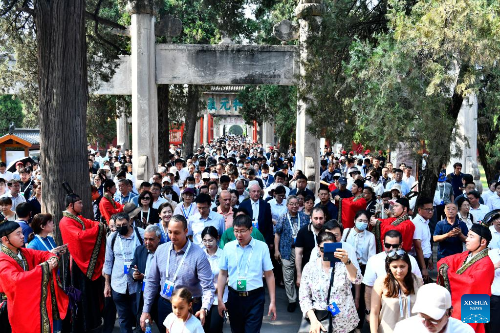 Chinese and foreign guests and tourists visit the Confucius Temple in Qufu, east China's Shandong Province, June 27, 2023. A series of activities to promote traditional Chinese culture were held at the Confucius Temple in Qufu during the World Internet Conference Nishan Dialogue on Digital Civilization on Tuesday. (Xinhua/Guo Xulei)