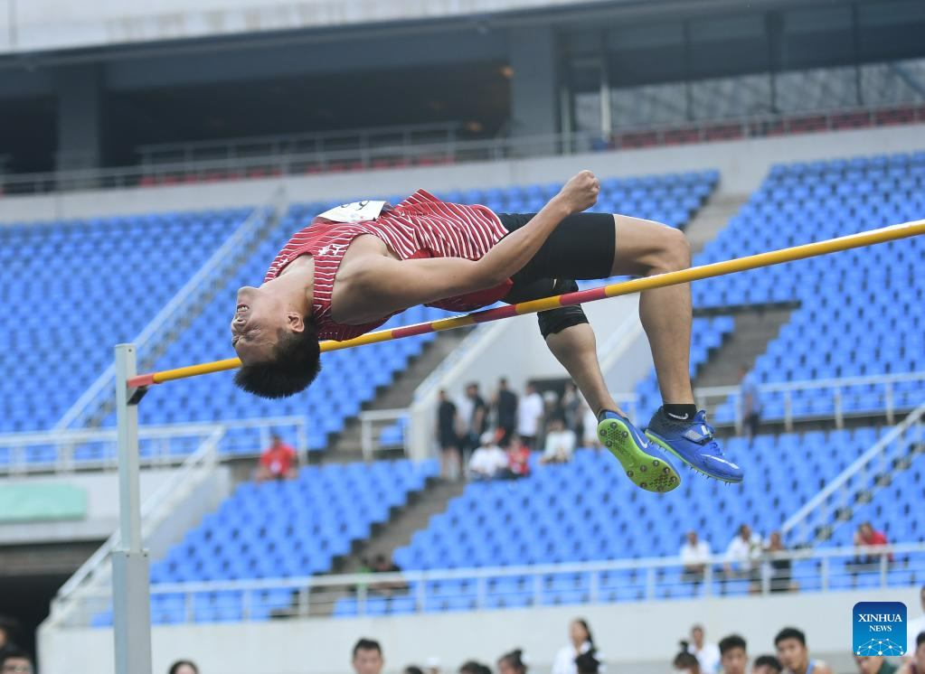 Hu Tao of Shanghai competes during the high jump event of the men's decathlon at the 2023 China's National Athletics Championships, a qualification trial for World Athletics Championships Budapest 23 and the Hangzhou Asian Games in Shenyang, northeast China's Liaoning Province, June 27, 2023. (Xinhua/Long Lei)
