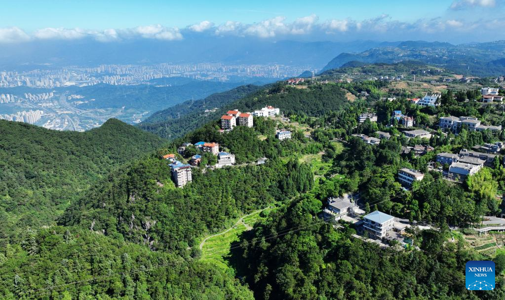 This aerial photo shows the scenery of Kuliang in Jin'an District of Fuzhou, southeast China's Fujian Province, June 28, 2023.