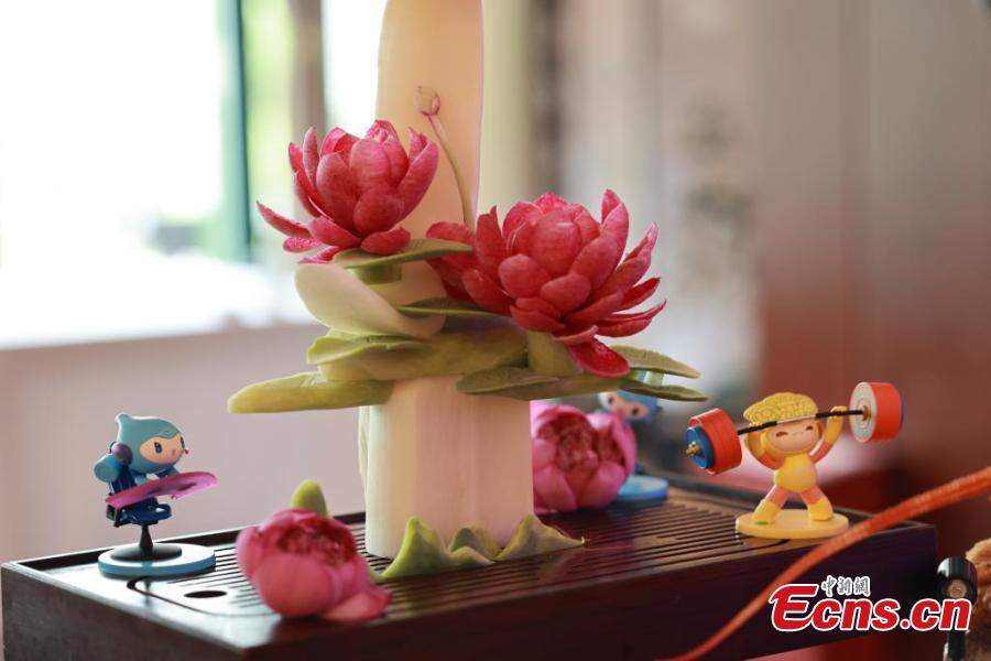 Dishes themed Hangzhou Asian Games are displayed at a cooking competition in Hangzhou, east China's Zhejiang Province, June 27, 2023. (Photo provided to China News Service)