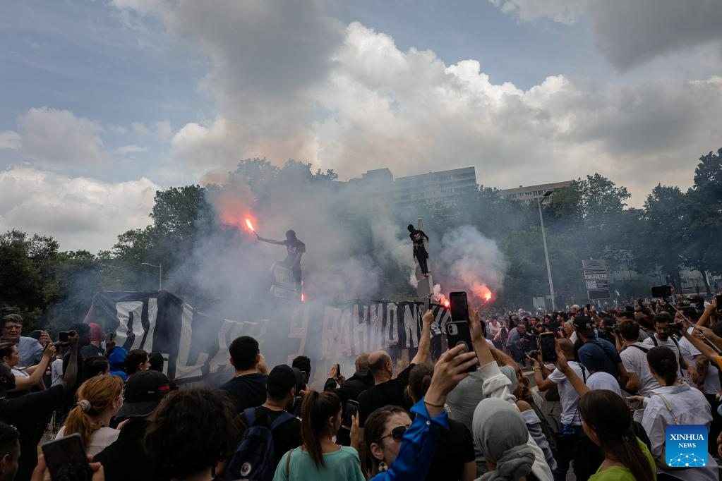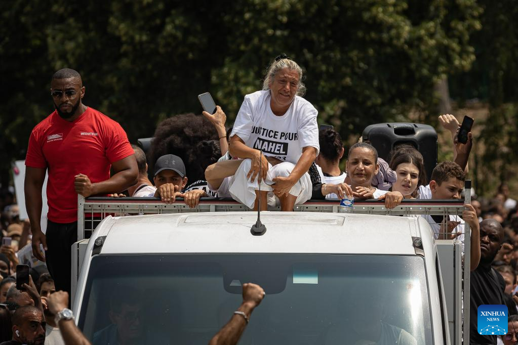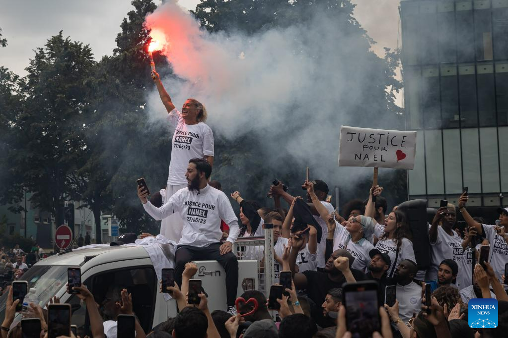 PARIS, June 29 (Xinhua) -- French security forces on Thursday deployed tear gas as they clashed with protesters during a rally triggered by the fatal shooting of Nahel M, a 17-year-old teenager, by a police officer during a traffic stop on Tuesday.