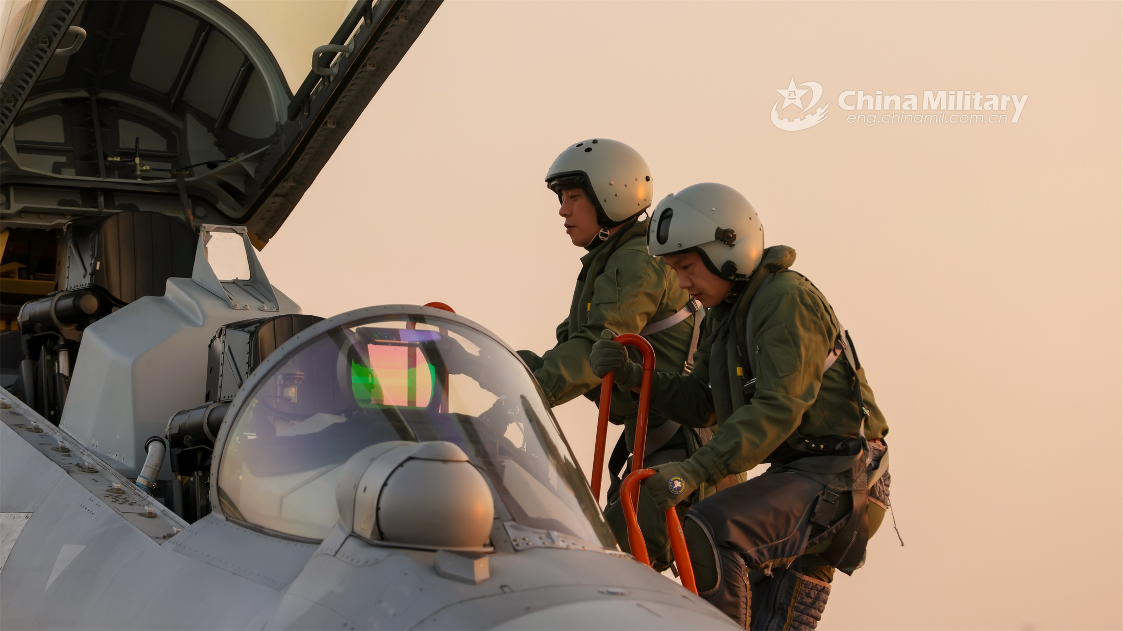 Pilots assigned to an aviation brigade of the air force under the PLA Southern Theatre Command board a fighter jet prior to a round-the-clock flight training exercise in late June, 2023. (eng.chinamil.com.cn/Photo by Hao Hunan)