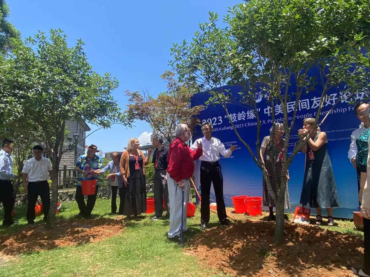Guests attending a symposium of the Kuliang Friends plant trees in Fuzhou, southeast China's Fujian Province, June 28, 2023. (Photo by Bai Ziwei/People's Daily)