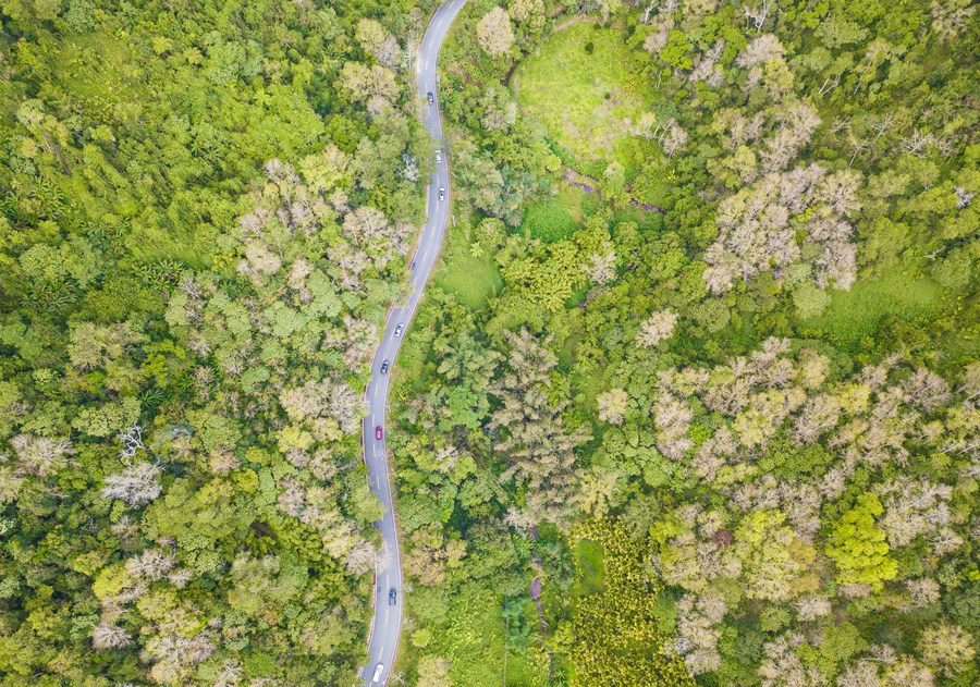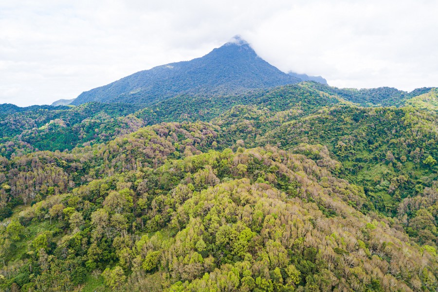 This aerial photo taken on Jan. 26, 2023 shows the Wuzhishan section of the Hainan Tropical Rainforest National Park in Wuzhishan City, south China's Hainan Province. (Xinhua/Pu Xiaoxu)