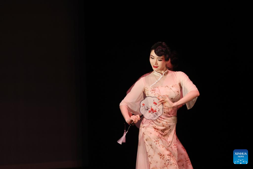 An artist performs during the Silk Road Dance Festival in London, Britain, July 1, 2023. A Chinese dance show was held in east London on Saturday evening, offering the local audience a sensory cultural feast. (Xinhua/Li Ying)