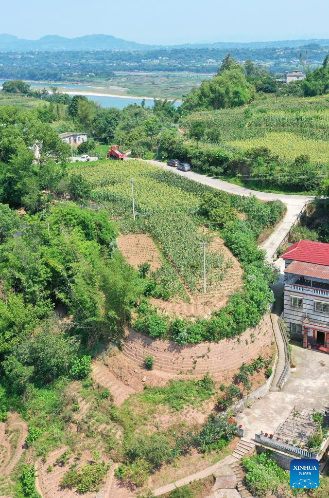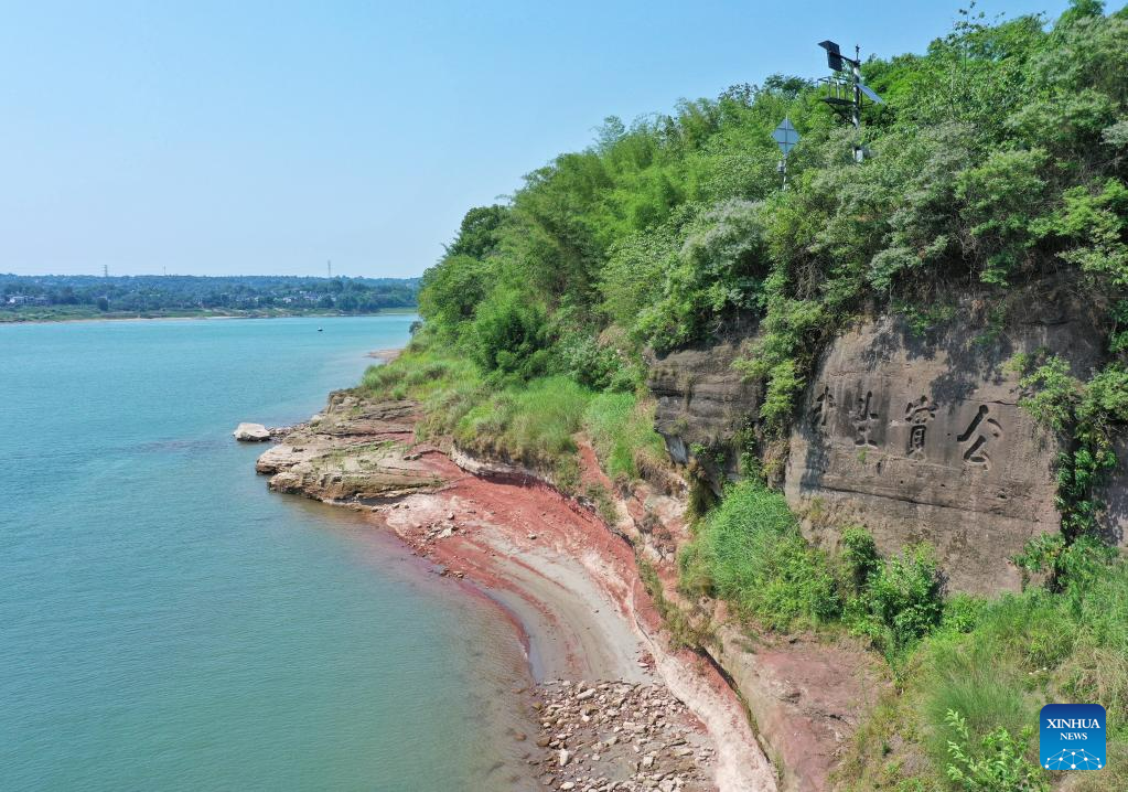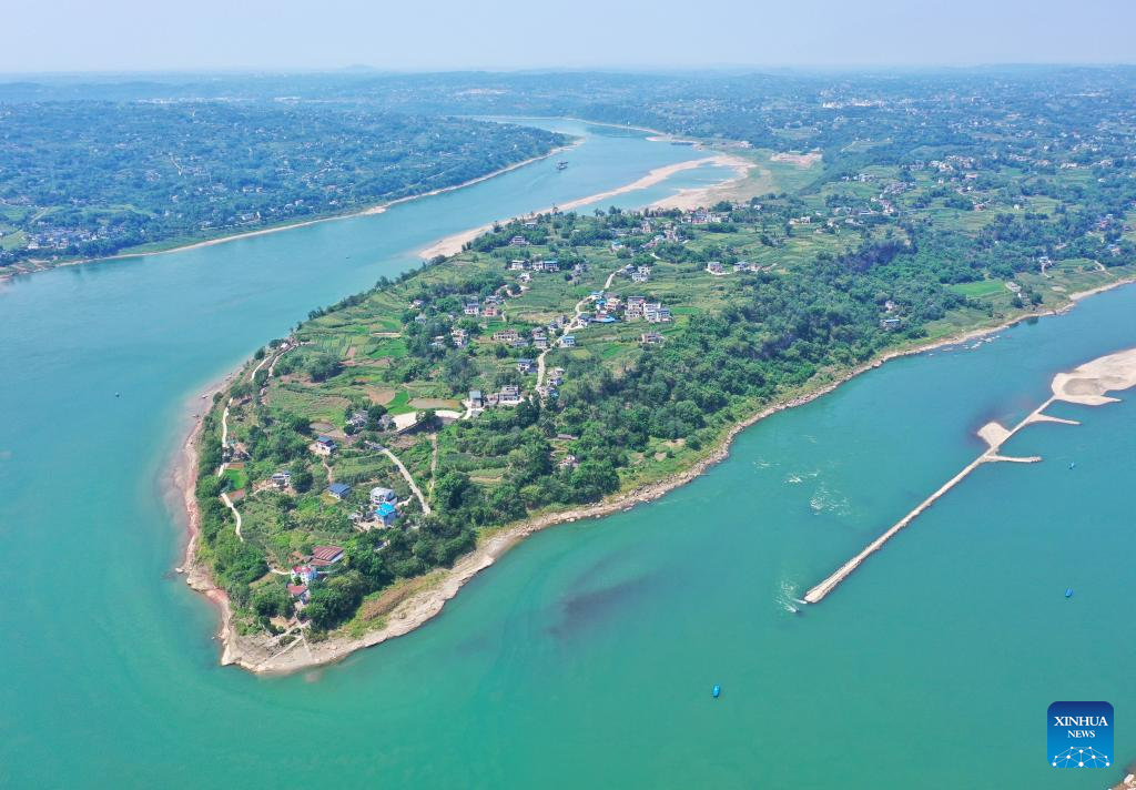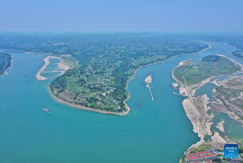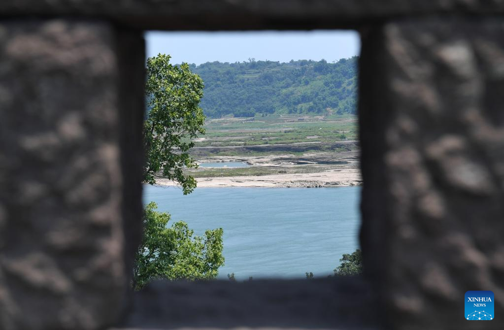 This photo shows the scenery of the Yangtze River seen from the Shenbi ancient battlefield site in Hejiang County of Luzhou City, southwest China's Sichuan Province, June 27, 2023. The ancient battlefield site was first built in 1243 during the Southern Song Dynasty (1127-1279). It was listed as one of the seventh batch of national key cultural relics protection units in 2013. (Xinhua/Liu Kun)