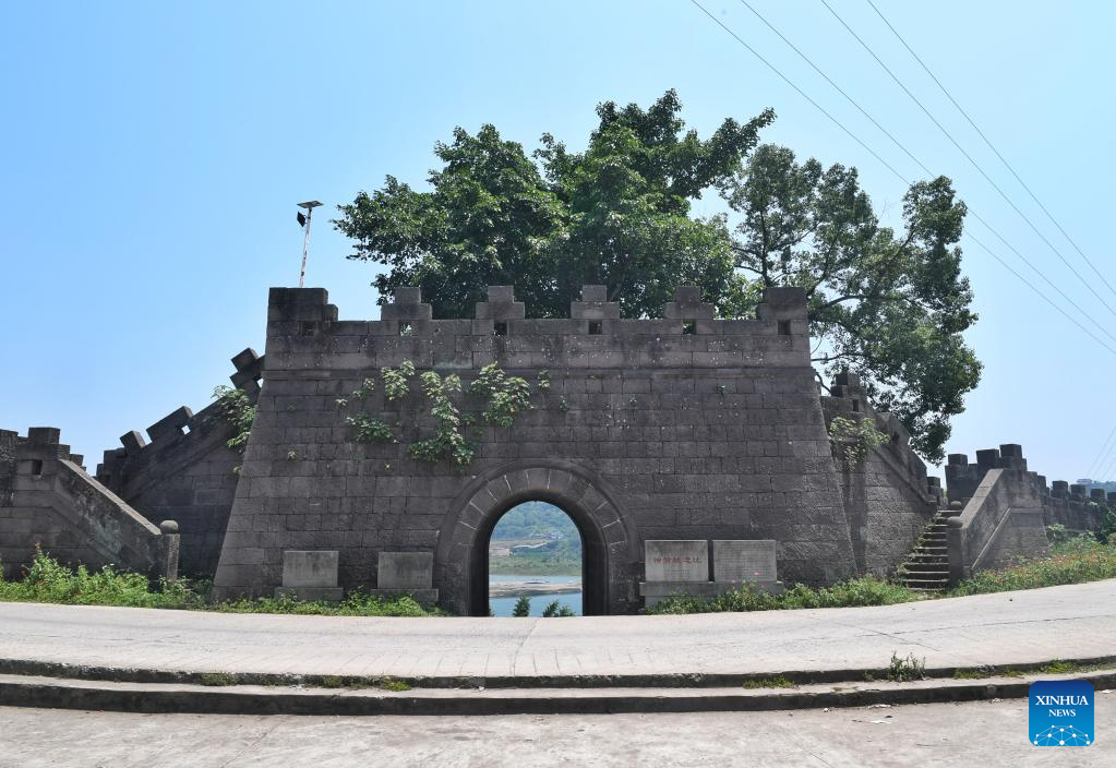 This photo shows the east gate of the Shenbi ancient battlefield site in Hejiang County of Luzhou City, southwest China's Sichuan Province, June 27, 2023. The ancient battlefield site was first built in 1243 during the Southern Song Dynasty (1127-1279). It was listed as one of the seventh batch of national key cultural relics protection units in 2013. (Xinhua/Liu Kun)