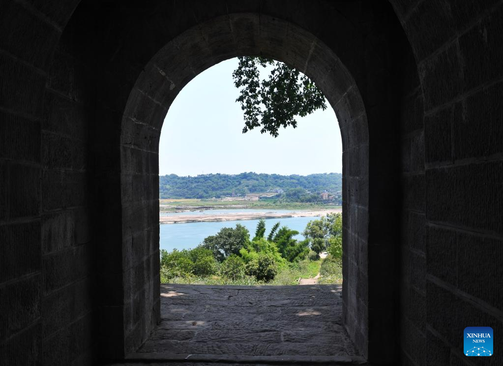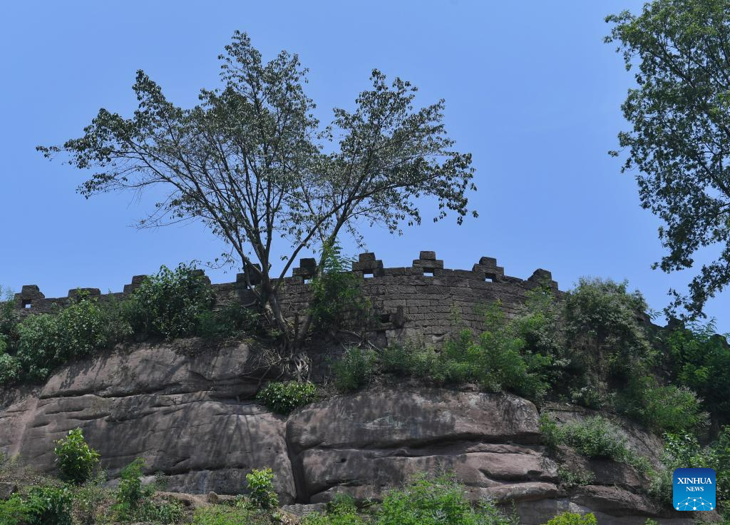 This photo shows a view of the Shenbi ancient battlefield site in Hejiang County of Luzhou City, southwest China's Sichuan Province, June 27, 2023. The ancient battlefield site was first built in 1243 during the Southern Song Dynasty (1127-1279). It was listed as one of the seventh batch of national key cultural relics protection units in 2013. (Xinhua/Liu Kun)