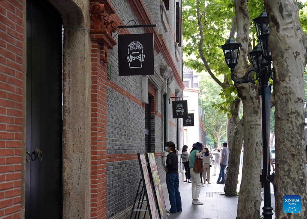 This photo taken on June 1, 2023 shows "Yi Coffee," a caf close to the site of the first National Congress of the Communist Party of China in Shanghai, east China. (Xinhua/Liu Ying)