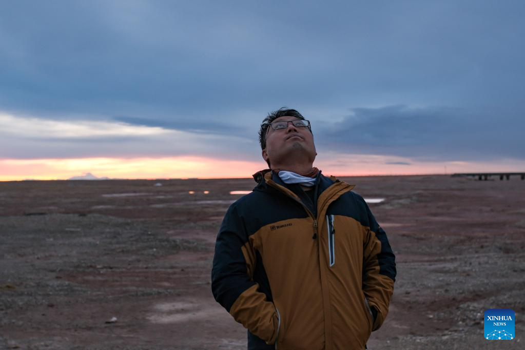 Lian Xinming poses for a photo in Hoh Xil, a natural reserve in northwest China's Qinghai Province, June 15, 2023.