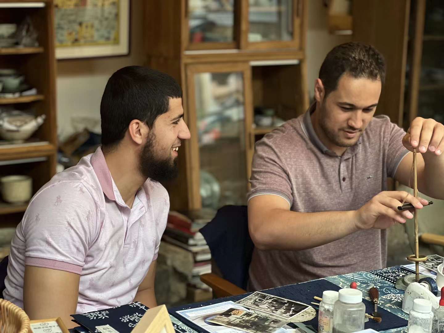 Visitors from Algeria participate in a porcelain restoration workshop at Qiankun Space in Beijing. (Photo provided to People's Daily Online)