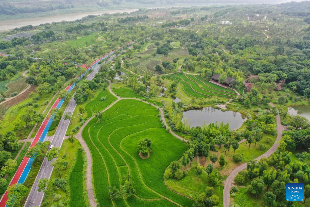 This aerial photo shows a view of Guangyang Isle in southwest China's Chongqing, July 3, 2023. (Xinhua/Tang Yi)