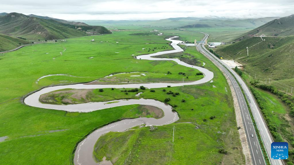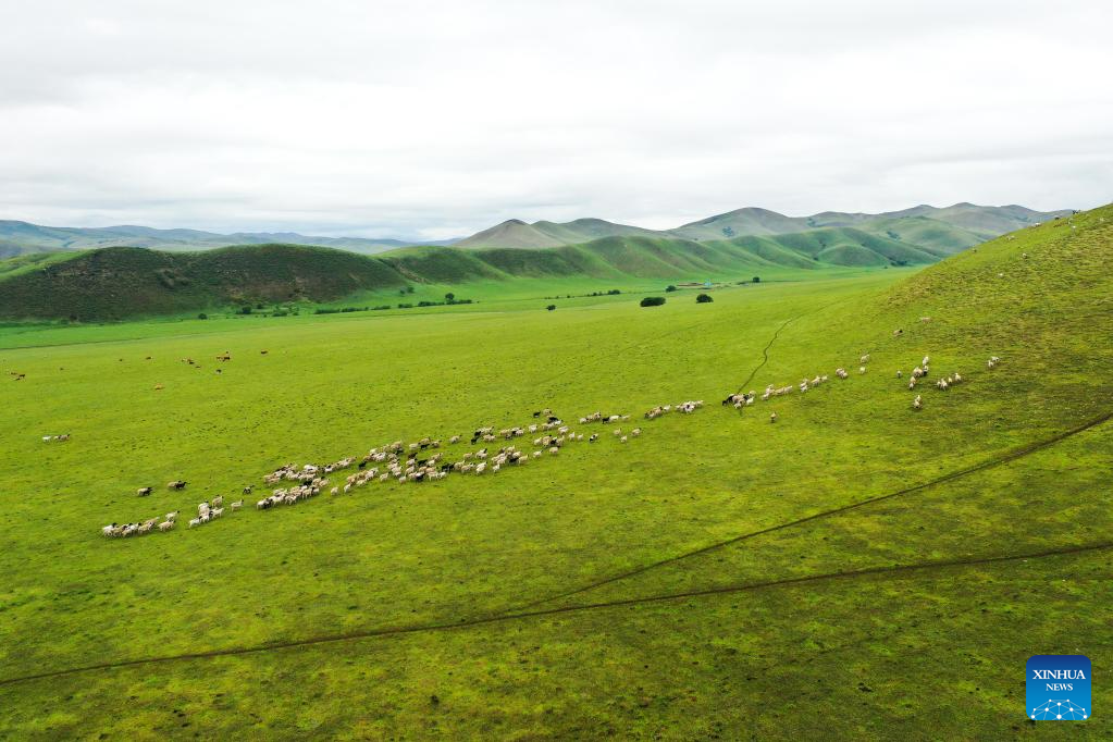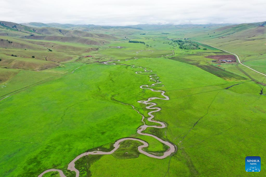 This photo taken on July 5, 2023 shows the summer scenery of the Ulan Mod grassland in Horqin Right Wing Front Banner of Hinggan League, north China's Inner Mongolia Autonomous Region. (Xinhua/Bei He)