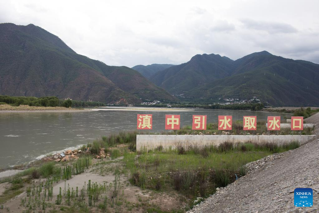 This photo taken on June 20, 2023 shows a view of the water sourcing section of the Central Yunnan Water Diversion Project in Shigu Town of Lijiang City, southwest China's Yunnan Province. Shigu Town of Lijiang City is located by a huge bend of the Jinsha River, the upper section of the Yangtze River in southwest China. The footprints of the Red Army are forever engraved in the town's culture and spirits. The Central Yunnan Water Diversion Project, a national key project for water conservancy, is under construction and is expected to benefit more people after completion. Generations of locals have worked hard to plant willows along the river to protect water, soil and the ecological environment. By the river thrives a new Shigu Town. (Xinhua/Jin Liwang)