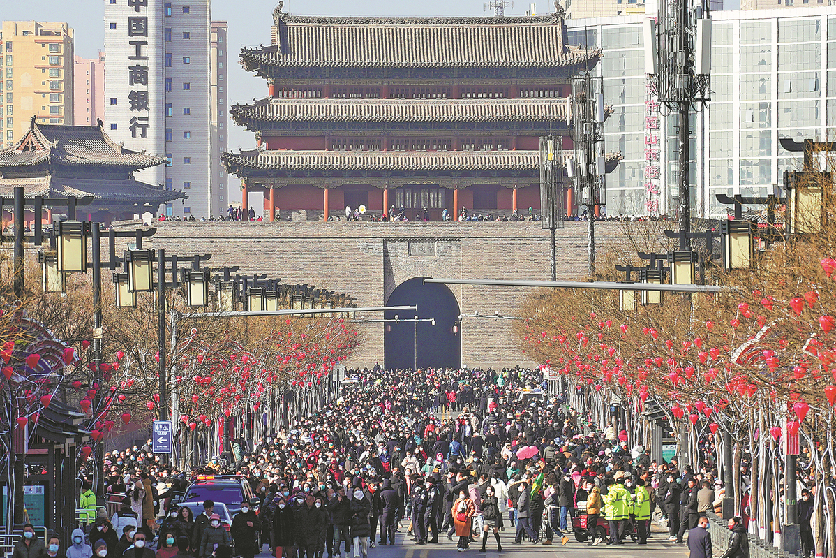 Tourists pack the ancient city of Datong in Shanxi province on Jan 29. WU JUNJIE/CHINA NEWS SERVICE