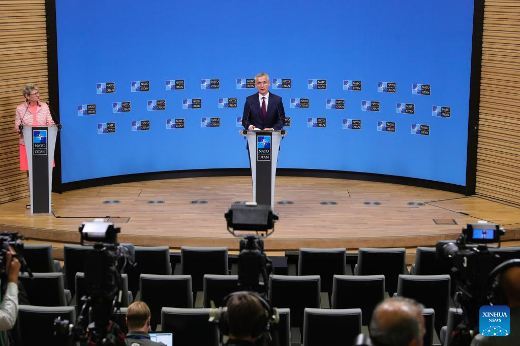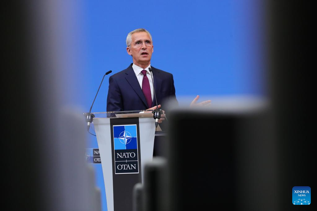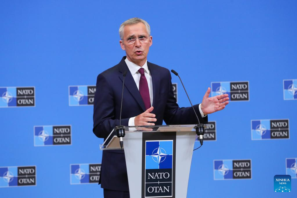 NATO Secretary-General Jens Stoltenberg speaks during a press conference at the NATO headquarters in Brussels, Belgium, July 6, 2023. (Xinhua/Zheng Huansong)