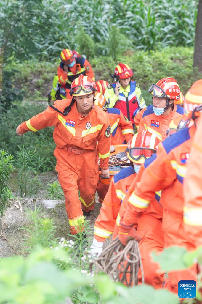 Rescue team members work in Linchang Village of Changtan Township, Wanzhou District of Chongqing Municipality, southwest China, July 6, 2023. (Xinhua/Tang Yi)