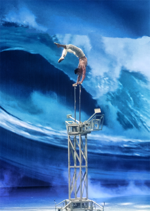An acrobat performs at a theatre within Wuqiao Acrobatics World in Wuqiao county, Cangzhou, north China's Hebei Province. (People's Daily Online/Zhao Zhao)