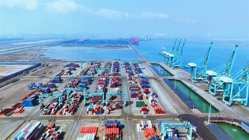 Photo shows a container terminal at Huanghua Port in Cangzhou, north China's Hebei Province. (People's Daily Online/Zhou Bo)