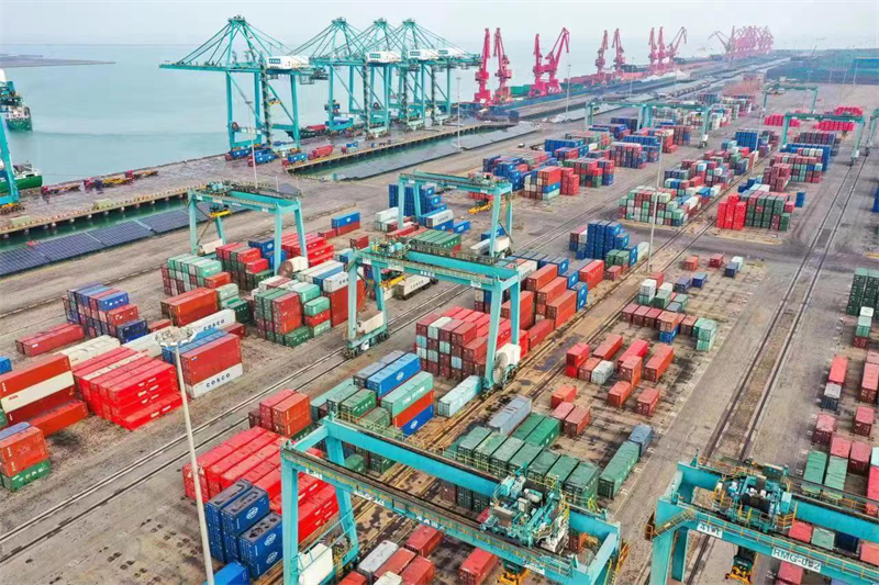 Photo shows a container terminal at Huanghua Port in Cangzhou, north China's Hebei Province. (People's Daily Online/Zhou Bo)