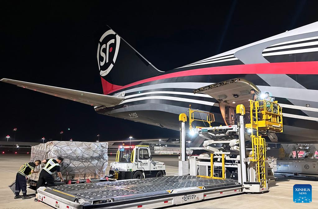 On early Friday morning, a B747-400 freighter took off at Ezhou Huahu Airport, China's first cargo-focused airport. It marked the launching of the second air route connecting the airport with Europe, said SF Airlines.