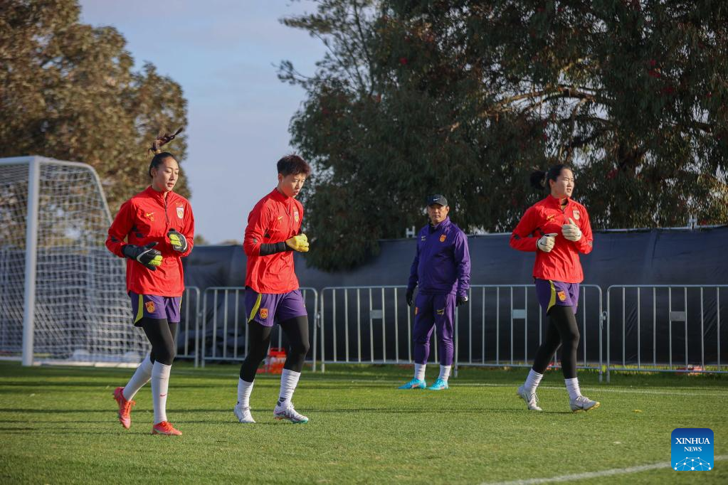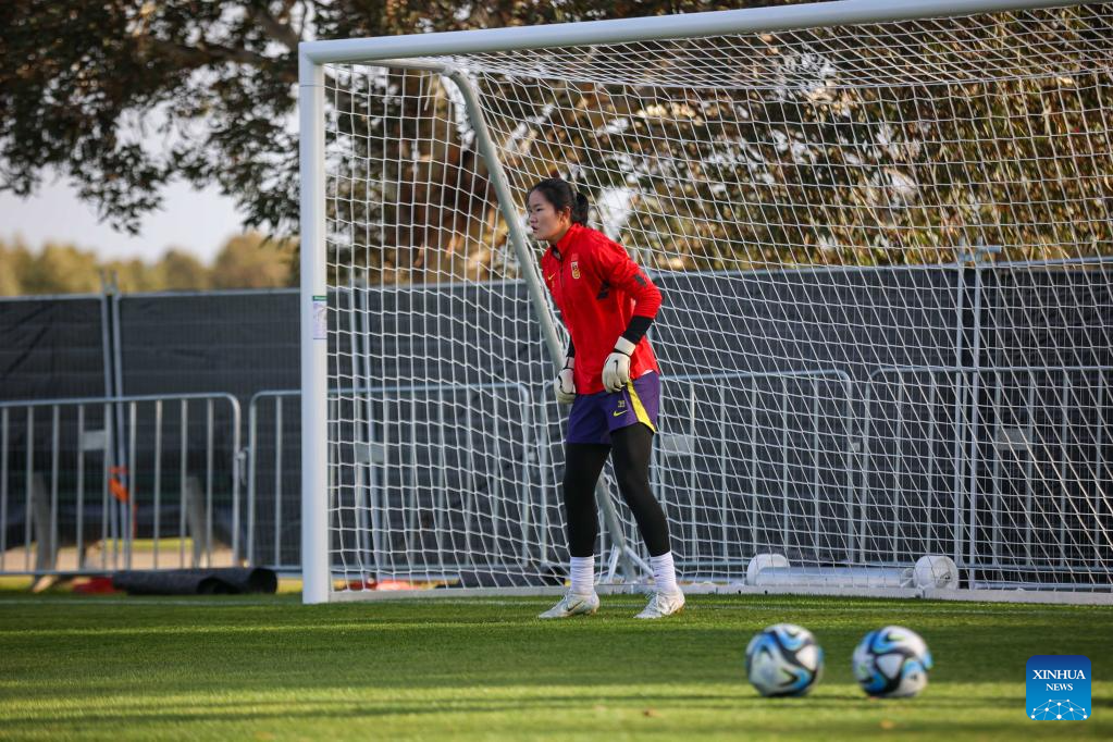 Goalkeeper Pan Hongyan of China participates in a training session in Adelaide, the capital city of South Australia, Australia, July 8, 2023. (Photo by Xie Sida/Xinhua)