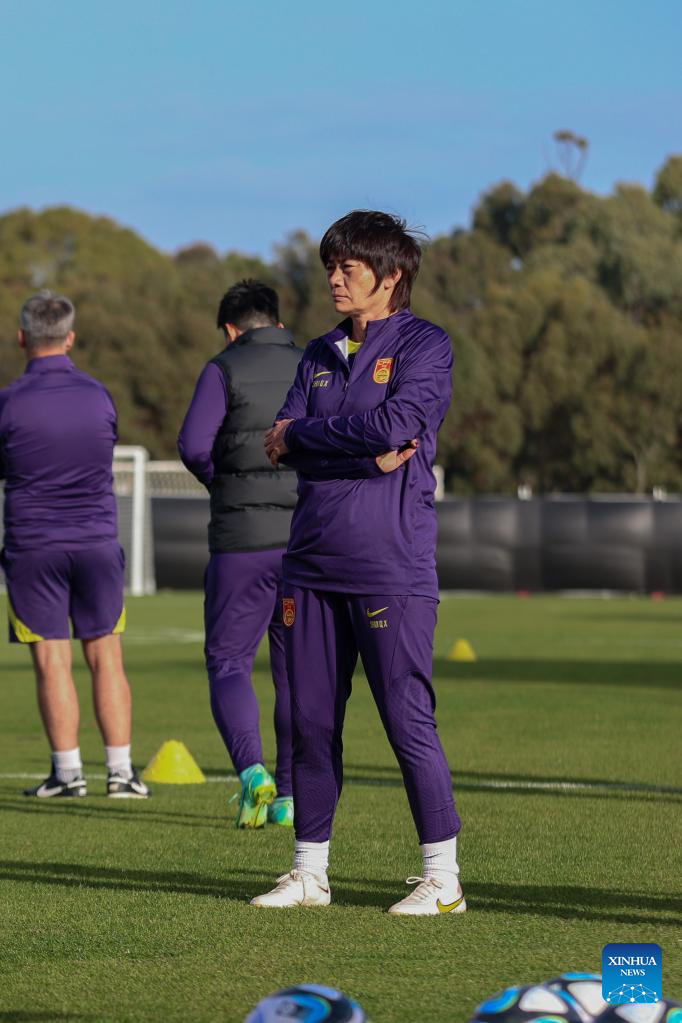 Shui Qingxia, head coach of Chinese women's national team, is seen during a training session in Adelaide, the capital city of South Australia, Australia, July 8, 2023. (Photo by Xie Sida/Xinhua)