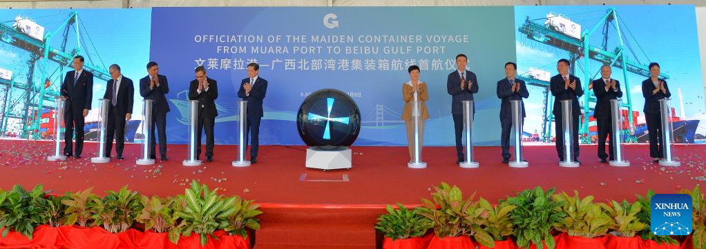 BANDAR SERI BEGAWAN, July 8 (Xinhua) -- Brunei opened a container shipping route between Muara Port, its sole deep-water port, and Beibu Gulf Port in south China's Guangxi Zhuang Autonomous Region, marking the first such route between the Southeast Asian country and China.