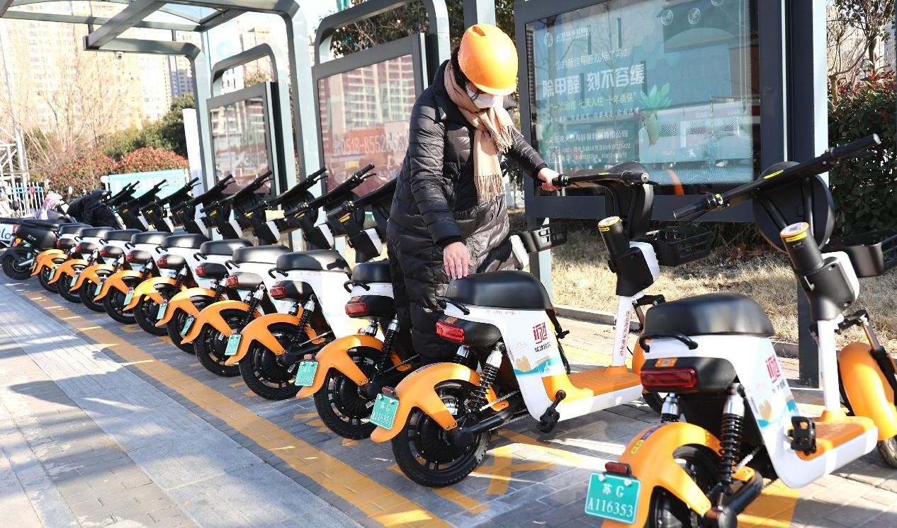 A citizen rides a shared electric bike in Lianyungang, east China's Jiangsu province. (People's Daily Online/Geng Yuhe)