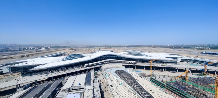 This photo taken with a mobile phone on June 17, 2023 shows a view of the Urumqi Diwopu International Airport, which is undergoing reconstruction and expansion, in Urumqi, northwest China's Xinjiang Uygur Autonomous Region. (Xinhua/Ding Lei)