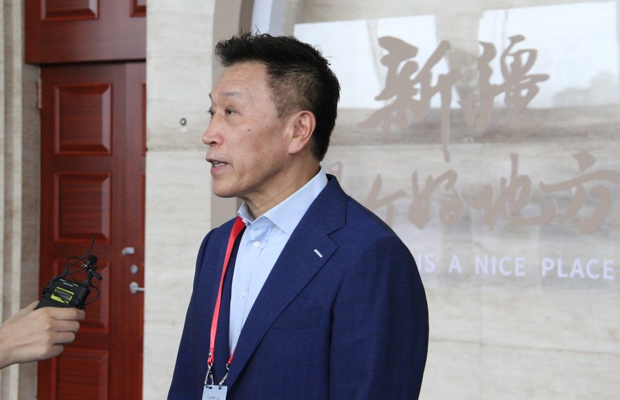 Alvin Liu, executive vice president of Boeing China, speaks during an interview with Xinhua in Urumqi, northwest China's Xinjiang Uygur Autonomous Region, July 6, 2023. (Xinhua/Liu Hongxia)