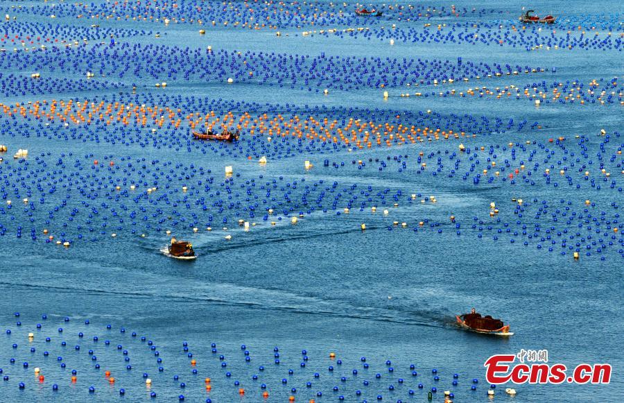 Aerial view of an abalone breeding farm in Lianjiang County, east China's Fujian Province. (Photo: China News Service/Zhang Bin)